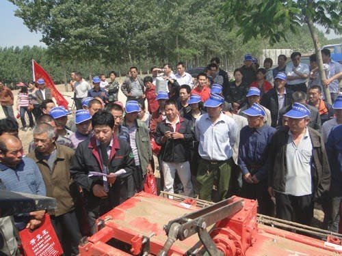 5月25日,由寧晉縣政府、寧晉縣農(nóng)業(yè)局主辦,大陸村鎮(zhèn)黨委參加的“寧晉縣深松機(jī)械演示暨研討會(huì)”在我公司勝利召開(kāi),本次演示研討會(huì)邀請(qǐng)了寧晉縣十多個(gè)鄉(xiāng)鎮(zhèn)的近300余名機(jī)手參觀演示,期間廣大機(jī)手朋友們參觀了公司產(chǎn)品展廳的樣機(jī),在生產(chǎn)車間了解了公司產(chǎn)品生產(chǎn)工藝,隨后又來(lái)到公司試驗(yàn)田現(xiàn)場(chǎng)觀看深松機(jī)具演示,并對(duì)公司機(jī)具演示效果做出了很高評(píng)價(jià)。