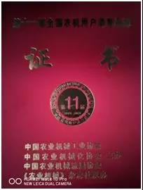 “第十一屆全國農(nóng)機(jī)用戶滿意品牌”。