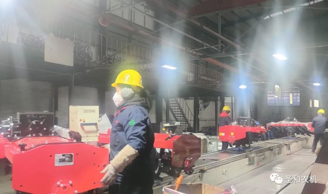 旋耕機(jī)組裝流水線加班生產(chǎn)中